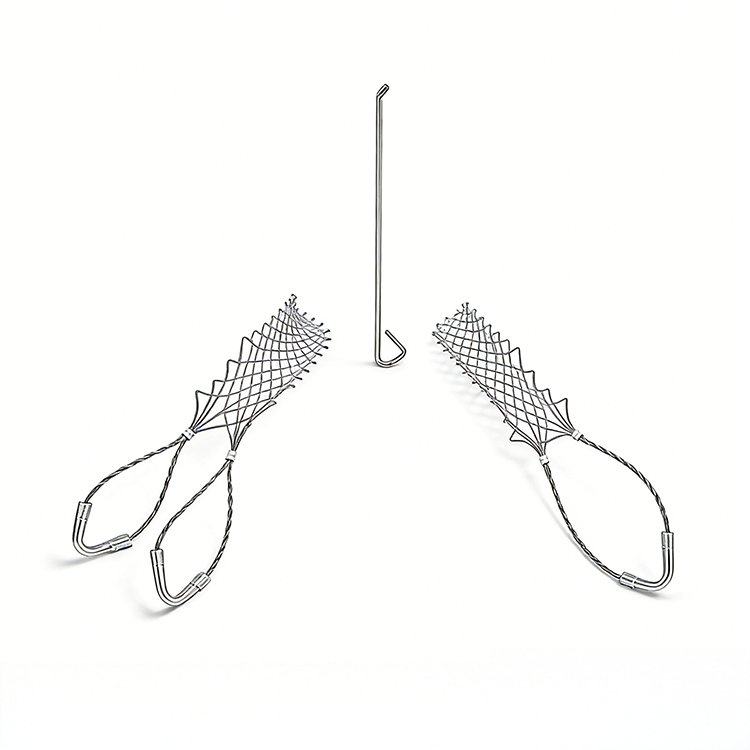 Split rod support grips are used when the end of the cable cannot be easily accessed and the installation is temporary