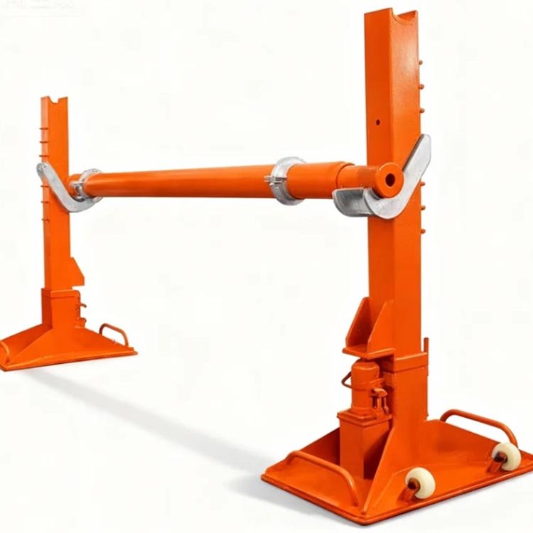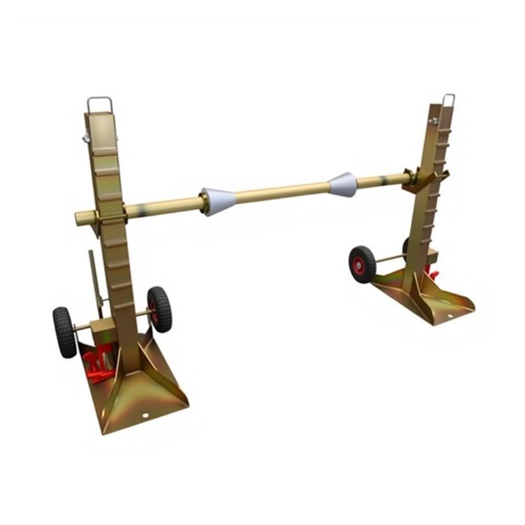 This kind of cable drum stands can be used for corporate construction, logistics handling ,factory machine transfer etc.The bottom with small wheels,easy to move. Large lifting force, suitable for large tonnage cable reels. Customized can be accepted.
