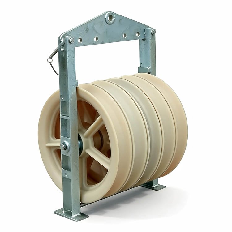 Description: Durable multi-sheave cable pulley block for heavy machinery, ensuring smooth cable operation, ideal for excavators and construction equipment.