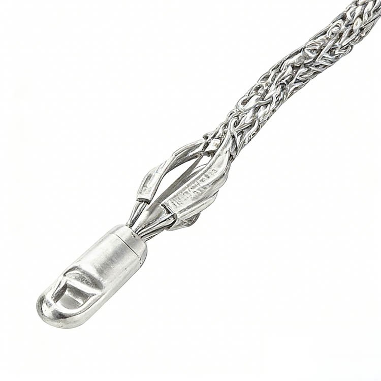 Multi-weave pulling grips are available with a flexible or rotating eye, which can be attached to a swivel