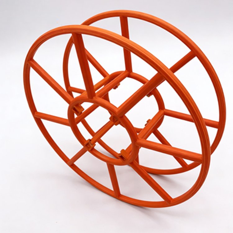 Sturdy yellow excavator cable spool with durable construction, ideal for organizing and protecting wiring on excavators. Visible color for easy identification and reliable performance.