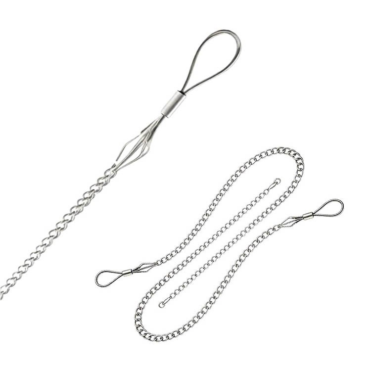 pulling grips feature a double weave of galvanized steel for greater strength and added mesh contact with the cable as well as a forged steel compact flexible eye, which can be attached to a swivel