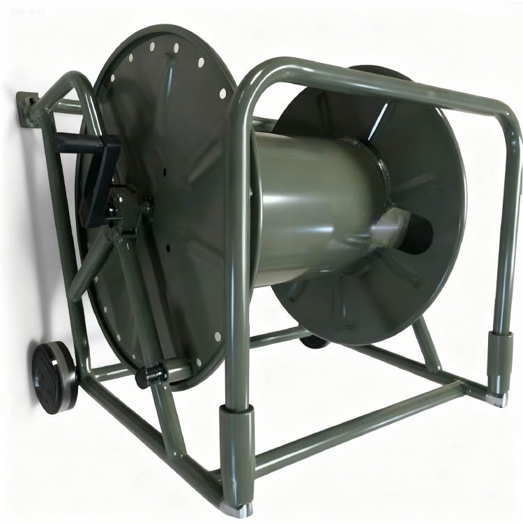 This portable cable reel trolley simplifies wire/hose storage, transport, and deployment. Durable frame, smooth rolling, ideal for industrial or field use.