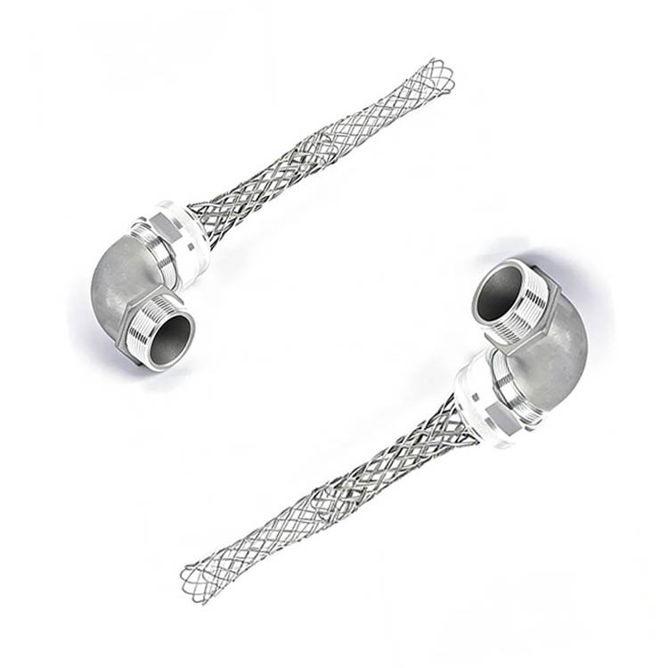 High-quality flexible braided metal hose with elbow fittings for reliable, corrosion-resistant fluid transfer in industrial or plumbing systems. Durable design ensures flexibility and long-lasting performance.