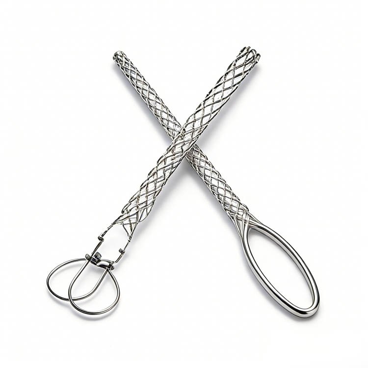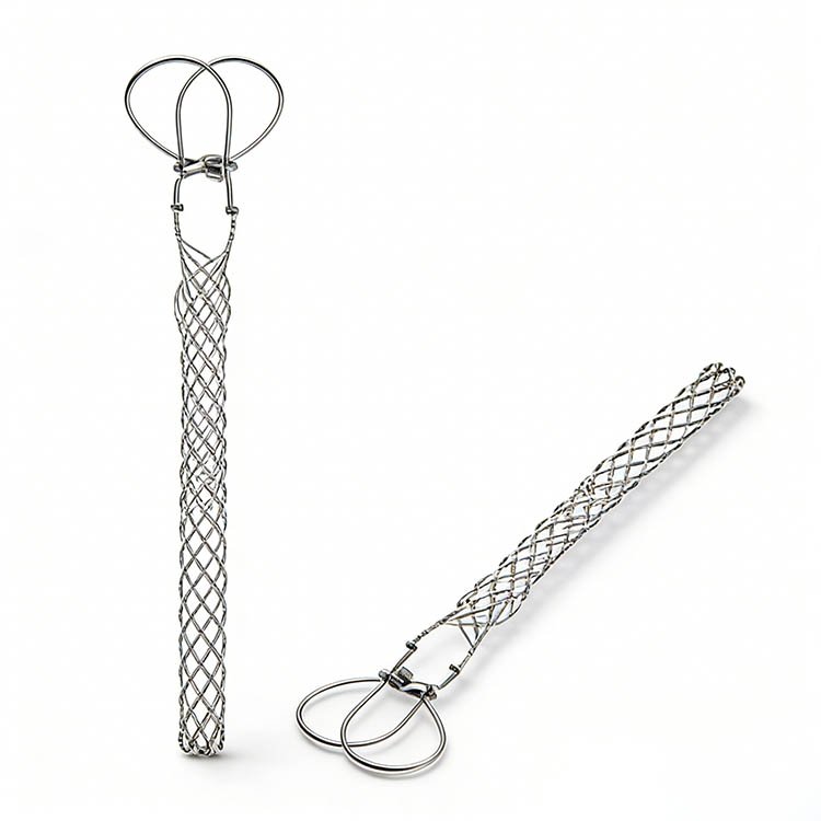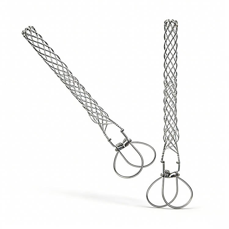 Service drop grips provide support for utility distribution lines from service pole to building or from pole to pole